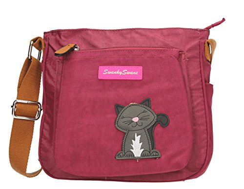 SwankySwans offer Emmy Womens Ladies Designer Pocket Crossbody Side Bag with Cat Motif- Marsala. This awesome product currently limited units, you can buy it now for £11.99, You save -